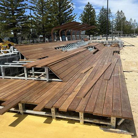 Spotted gum decking fixed with stainless steel screws.
